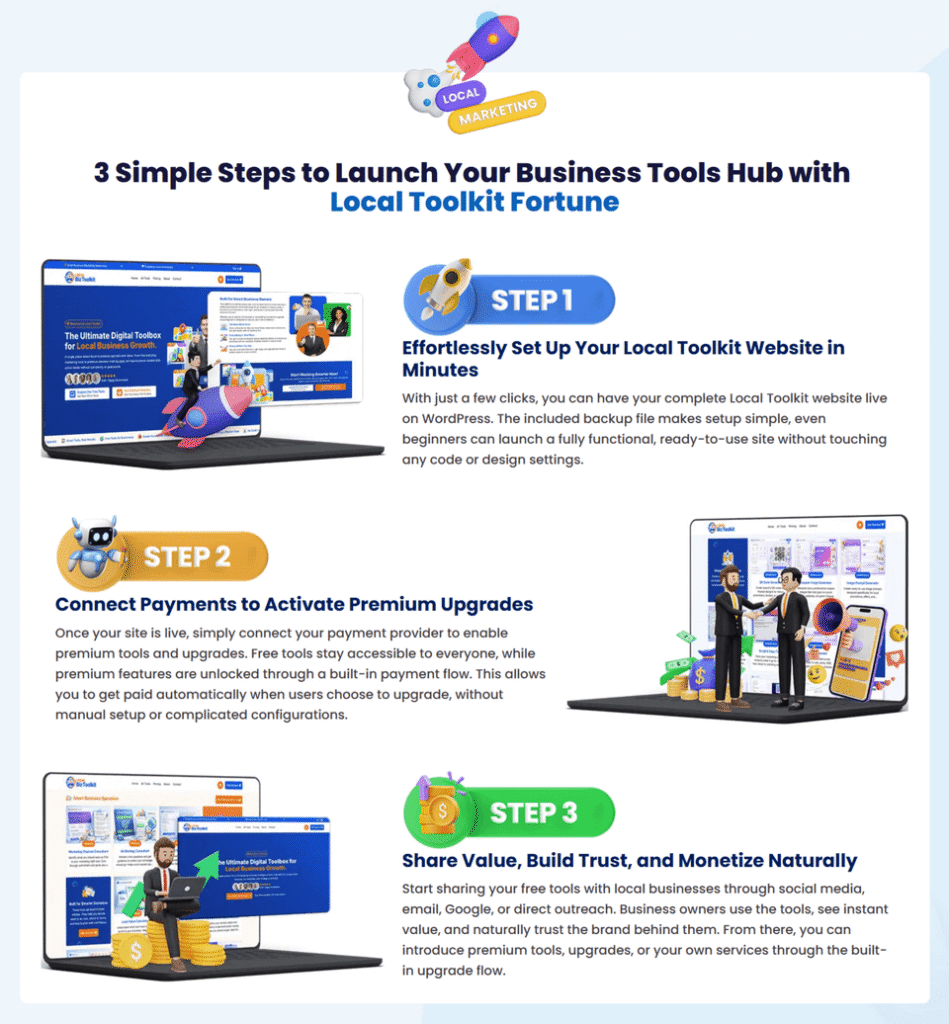 Local-Toolkit Does The Heavy Lifting For You, helping you launch proven local marketing projects quickly and easily—even if you’re a complete beginner.